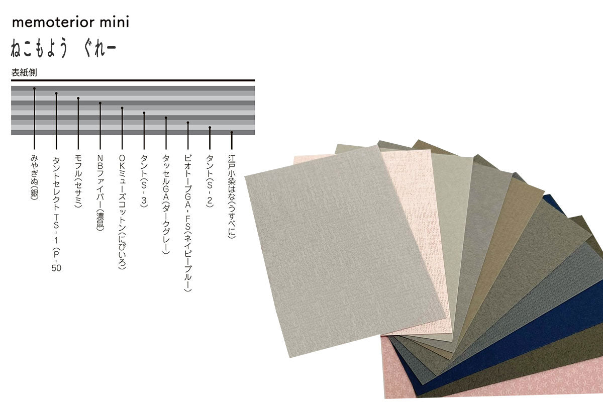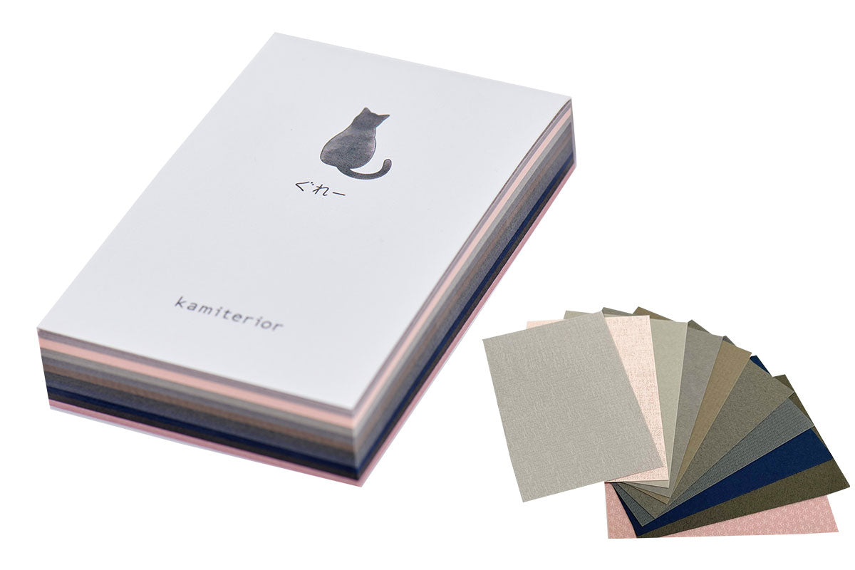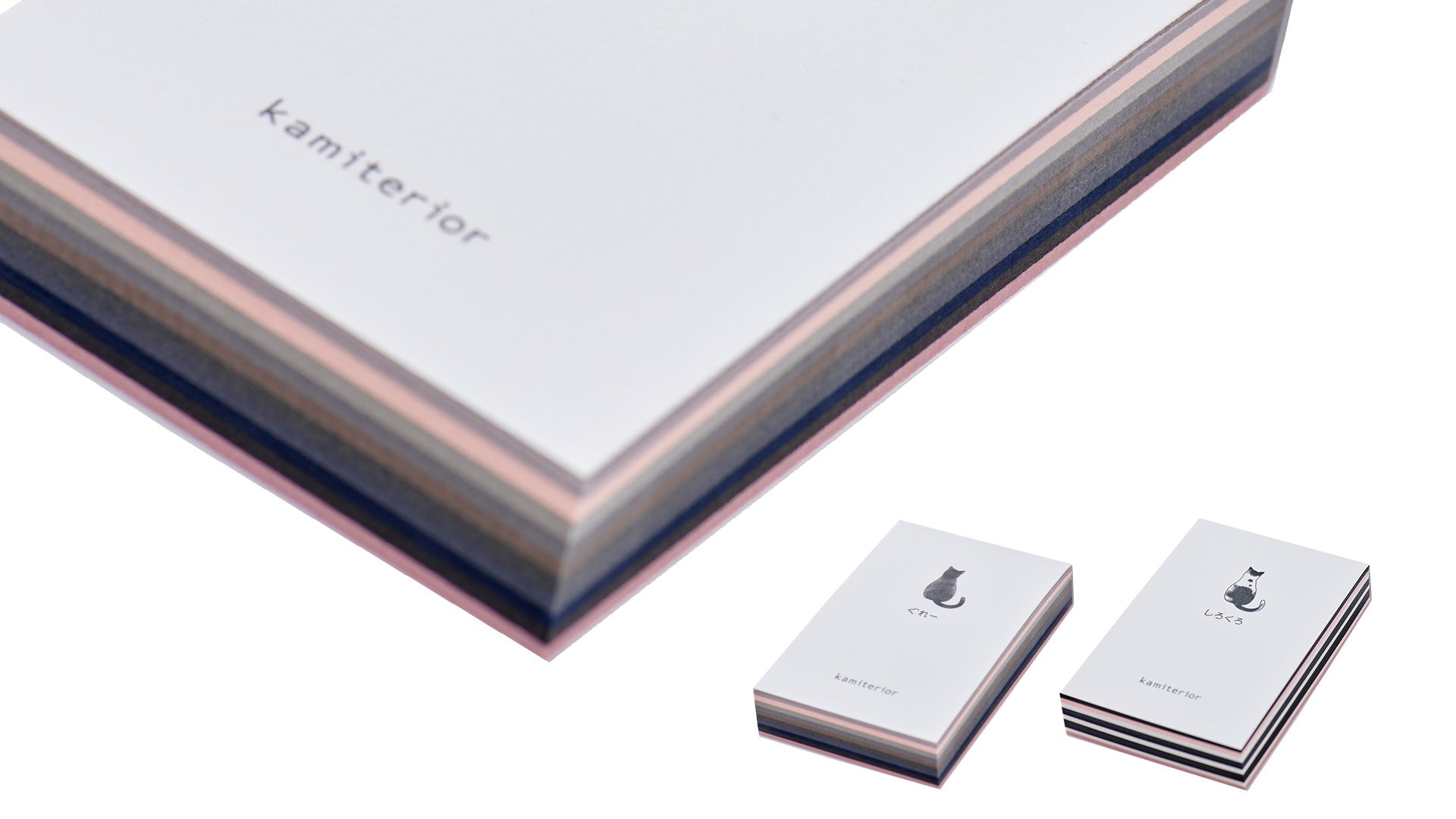 メモの断面で各柄の特徴を表現した、「memoterior mini ねこもよう」は10種類各10枚(合計100枚)の紙が生み出す美しい断面を楽しむメモ帳です。
