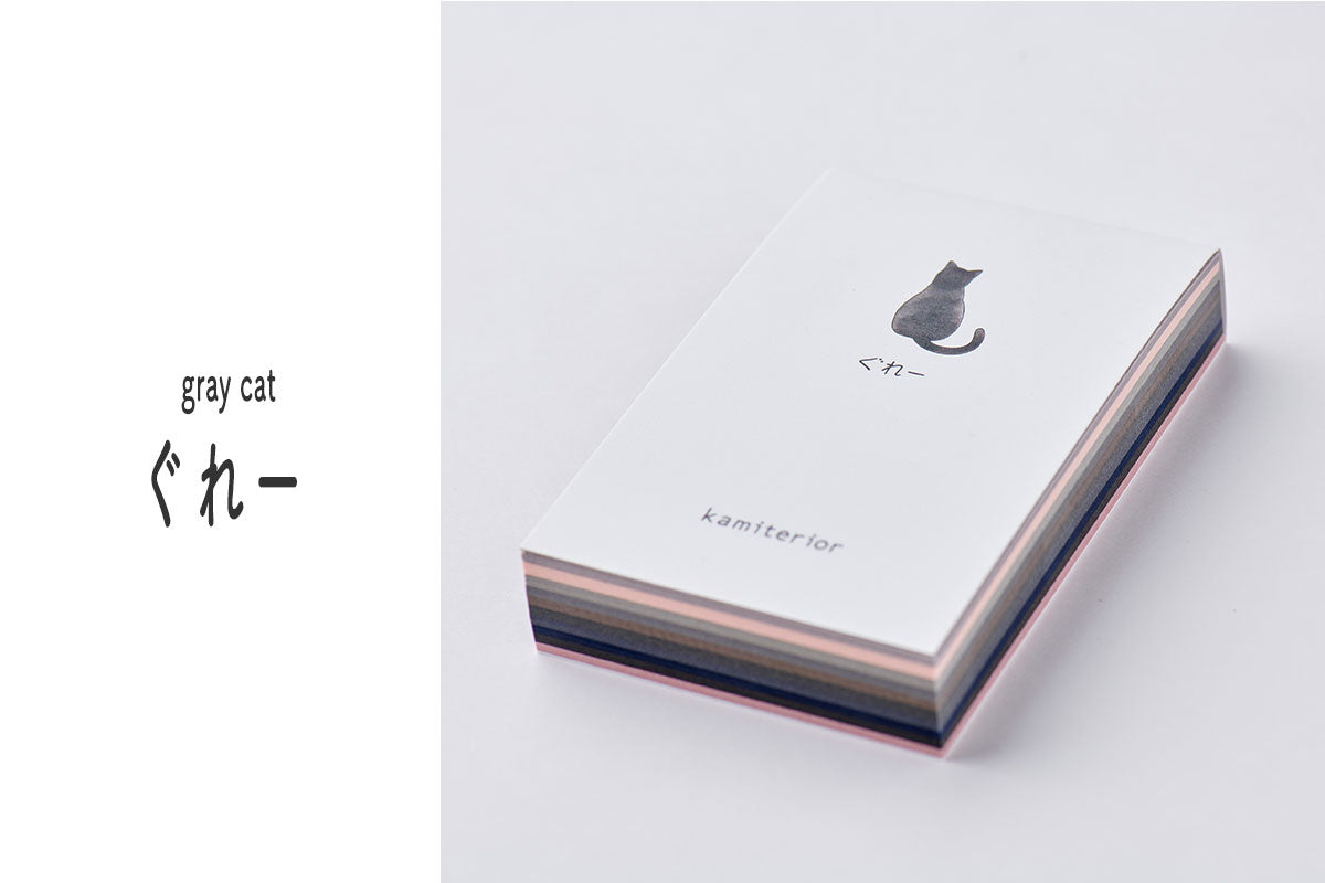 - 合計100枚の紙で、横の " 断面 " でねこの毛色や模様を表現したメモ帳になります。 色が違うだけではなく、紙自体が10枚区切りで異なり、手触りも書き味も異なる、見て楽しい、使って楽しいメモです。